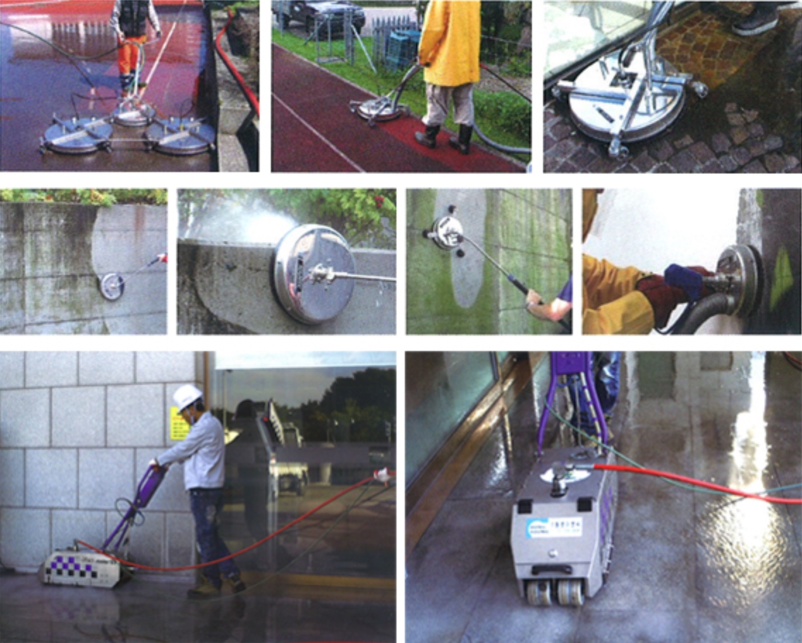 특허 제10-1131515호 워터 제트를 이용한 노면표시 제거장치는 도로상에 도색된 노면표시의 제거는 물론 주변 도로의 표면 손상 을 억제할 수 있는 동시에 분진의 발생 및 비산을 효과 적으로 방지하면서 대차의 이동성과 워터 제트의 분사 효율성을 보다 높여 노연청소 작업이나 미끄럼 방지용 요철 노면형성 작업을 효율적으로 수행할 수 있다. |